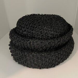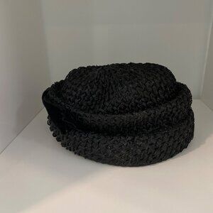 Item keywords: Vintage stylish hat, 50s/60s, retro, VTG, designer hat, chic elegant, timeless classic, special occasion, memorial, velvet detailing, late 50`s/60`s, straw hat, vintage hat, black straw hat, velvet bow hat, Piko Montreal hat, women's vintage hat, retro fashion hat, classic black hat, elegant vintage hat, woven straw hat, vintage accessories, timeless style hat, 1950s style hat, black evening hat