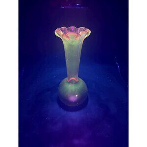 Perfect as a statement bud vase for a single flower or as a striking collectible display piece. The brilliant cranberry tone adds warmth to any décor, while the UV glow makes it a conversation starter for collectors of manganese-reactive glass.