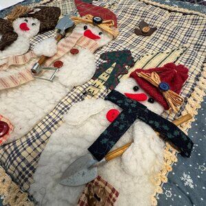 Vintage Pillow Cover 2D Handmade Christmas Winter Snowman Family Zipper *read*