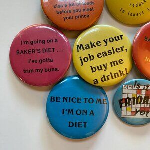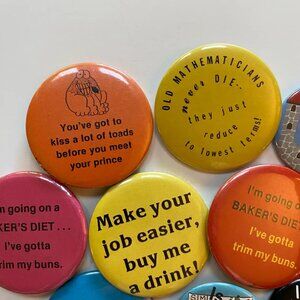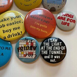 Lot of vintage pinback buttons in preowned vintage condition.