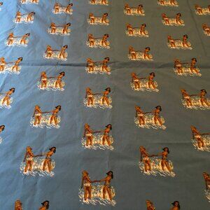Vintage Pin Up Girls 50s Style Beach Print Fabric Blue J Crew Water Ocean Women In Bathing Suit Models Yardage Cutter 1.75 Yd x 66 “