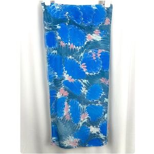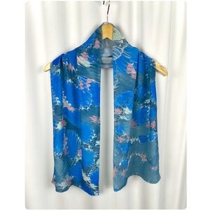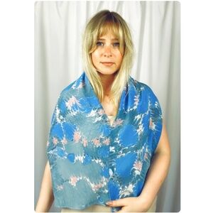 Vintage Pink + Blue Paint Swirls Printed Long Rectangle Scarf • Hand Stitched Rolled Hem • Hair + Neck Scarf • Lightweight • Silky