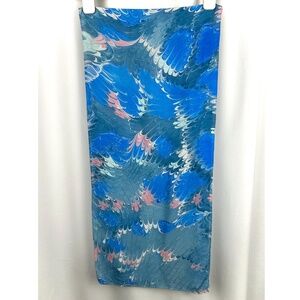 Vintage Pink + Blue Paint Swirls Printed Long Rectangle Neck Scarf