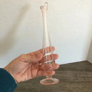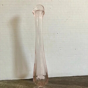 Adorable little pink glass bud vase with a footed base. Almost appears hand blown but with the mold marks on the base I would say that maybe the top portion was blown and the bottom pedestal applied after. Unsure on exact age. Does not seem reactive to UV light.