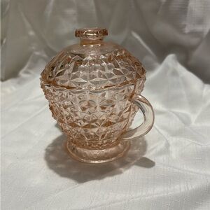Vintage Pink Depression Glass Sugar Bowl with Handles