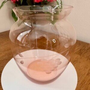 A gorgeous Depression-era piece, this vase is loved for its etched detailing and gentle pink tone—perfectly capturing the charm of 1930s glass artistry.