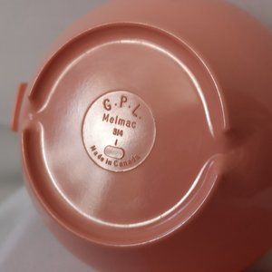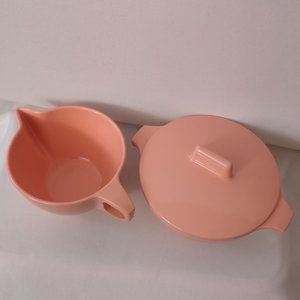Vintage pink GPL Melmac covered sugar bowl and creamer set in like-new condition, Made in Canada.