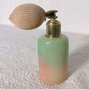 Vintage Pink Green Genuine Alabaster Perfume Atomizer Puff Sprayer Bottle