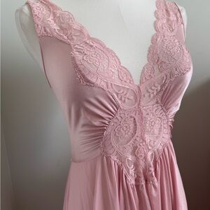 Vintage Pink Lace Robe & Slip Set 70s Satin Lingerie Peignoir Dressing Gown S/m