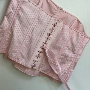 Elegant pink overbust corset with lace-up back and hook and eye closures in the front. Bought nwt and wore like twice so it’s in good condition.