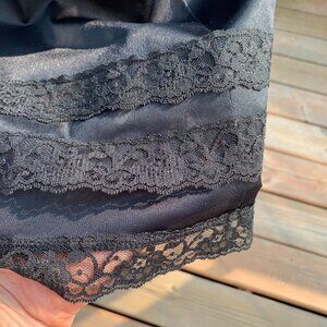 Vintage Pink Lady Black Satin Lace Trim Lingerie Full Slip Dress Nightgown