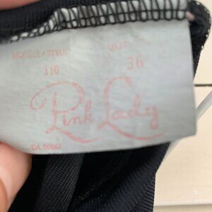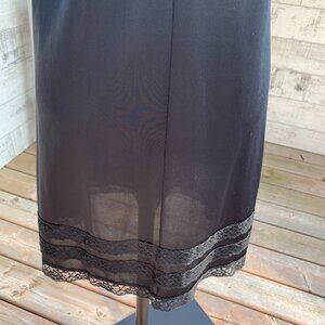 Vintage Pink Lady Slip Dress Nightgown 36 Black Satin Lace Trim Midi Lingerie