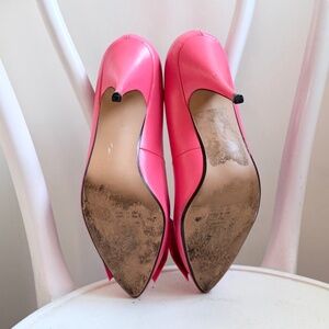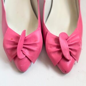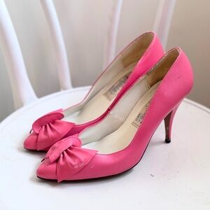 Vintage Pink Leather Stiletto Pumps Bows 8.5 or 9.