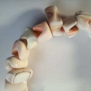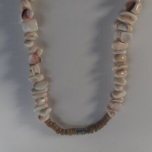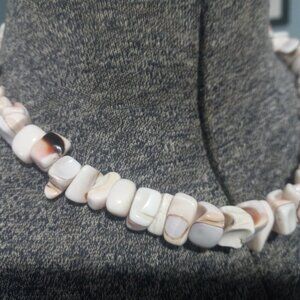 Vintage Pink Luanos Conch Shell Necklace 18 inch Polished Shaped Whites, Pinks