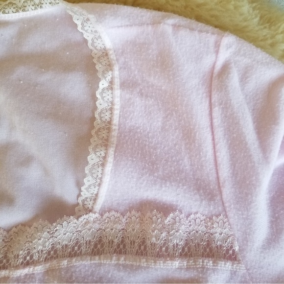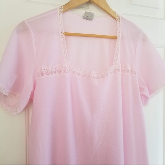 Soft pink nightgown with lace trim. Comfortable and elegant design.