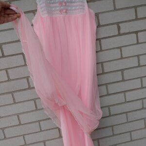 Vintage Pink Nylon Chiffon Nightgown Long Nightie 36"B Small Slumber Suzy Sheer