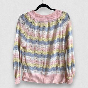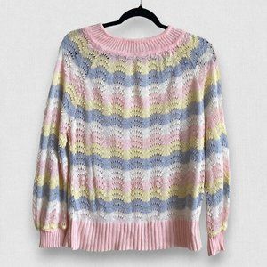 Vintage Pink Pastel Lace Knit Cottage Raglan Long sleeve Sweater