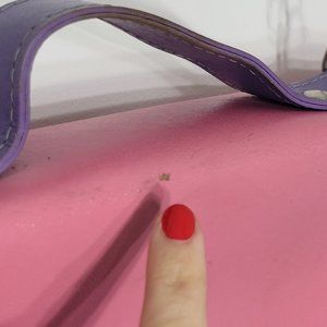 Vintage Pink Purple Leather Kids School Bag Shoulder Strap Top Handle Retro 80's