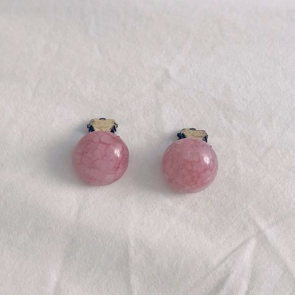 Pretty pink dome resin* clip-on earrings. Vintage 1960’s. There is a small chip out of one of the earrings. See photos. Please view carefully. Price reflects flaw (small chip).