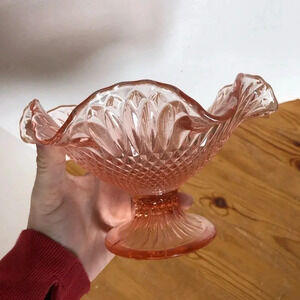 Vintage Pink Ruffle Footed Glass Compote Dish