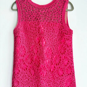 Vintage Pink Sheath Dress Crochet Cordé Sleeveless M/L