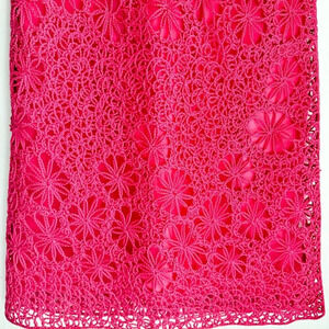 This vintage handmade sheath dress in a beautiful shade of pink is the perfect addition to any cocktail occasion. The dress features elegant crochet cordé detailing and a sleeveless design, giving it a classic 1960s look.