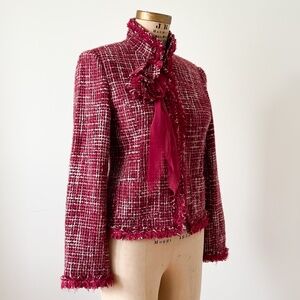 Vintage Pink Tweed Mac & Jac Blazer Removable Flower Size 8 Barbie Feminine