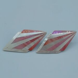 Vintage Pink White Seashell Diamond Shape Geometric Earrings #1218