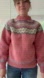 Stay cozy and stylish with this pink patterned sweater. Perfect for cold winter days.
