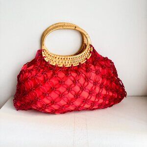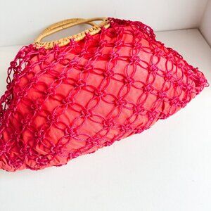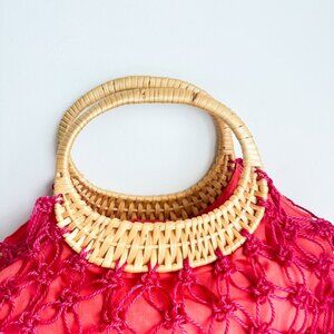 Vintage Pink Woven Braided Raffia Handle Medium Tote Bag.