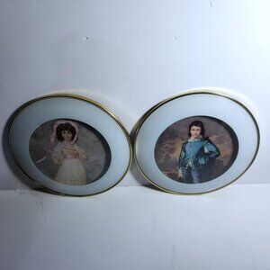 Vintage Pinkie and Blue Boy Set of 2 Convex Glass Bubble Frame Hanging Wall Art