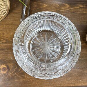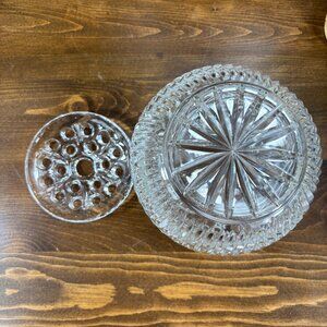Vintage Pinwheel Cut Crystal Flower Frog Vase Globe Shape Glass Centerpiece