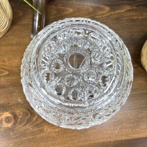 Very good vintage condition with brilliant clarity. There is a tiny surface flaw on the edge of the lid that appears to be an original burst bubble in the glass. It's very minor, and does not affect appearance or function. See last photo.