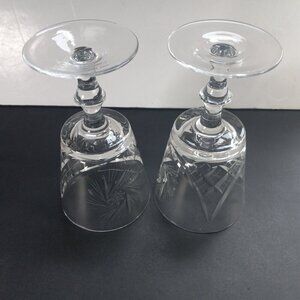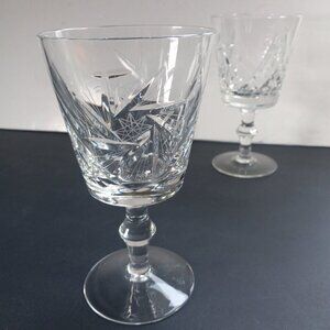 Vintage Pinwheel Cut Crystal Red Wine Goblets Bohemian Style a Pair (2)
