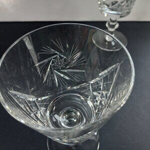 Vintage Pinwheel Cut Crystal Red Wine Goblets Bohemian Style a Pair (2)