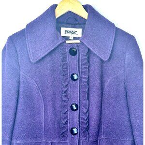 Vintage Pizazz Womens Coat Wool Winter Ruffled Placket & Sleeves Purple Size 12