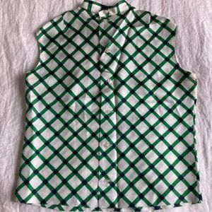Vintage plaid blouse with tie at the top. The blouse does up with buttons on the back. There is some discolouration under the armpits.