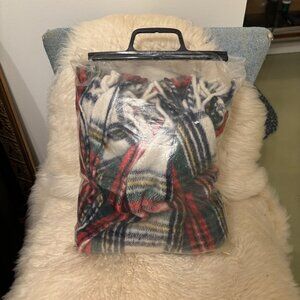 Vintage Plaid Fringed Stadium Blanket, Red White Green Blue 51" x 67" NIB