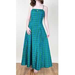 Vintage Plaid Gown Maxi Dress Princess Formal Dance Prom Gala Evening Wear Fancy