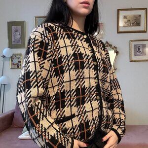 This sweater is perfect for the festive holiday season! Featuring gold buttons and an intricate plaid print, this sweater is perfectly unique <3