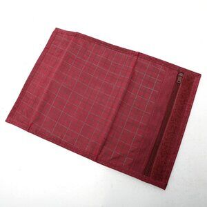 Vintage Plaid Nylon Wallet Red Burgundy Checks Zipper Velcro Closure
