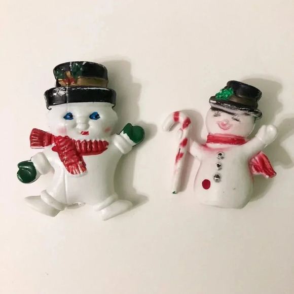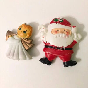 Vintage Plastic Blow Mold Christmas Ornaments Santa Snowman Angel Some Damage