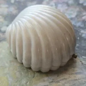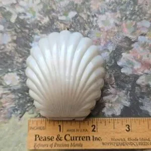 Charming vintage ivory white plastic clam shell ring box in very good vintage condition with minimal signs of wear and no damage to the inner velvet or satin lining. Measurements shown in photos.