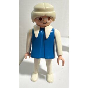 Vintage Playmobil Figures Set Of 3 Grandma Woman Blue Hat Geobra Blue Yellow Red
