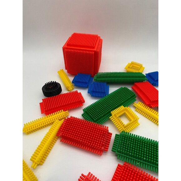 Vintage Playskool Bristle Blocks Set. Comes with box and 26 pieces. The original set has 39 pieces. It is missing 13 pieces.