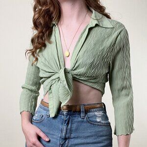 Stunning Vintage Pleated Crinkle Texture Oversized Button Up Relaxed Fit Blouse Shirt Top