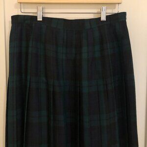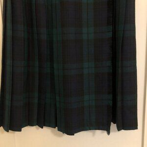 Vintage dark emerald green and navy blue checkered plaid tartan pleated wrap skirt/kilt by St. Michael.