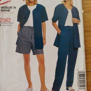 Vintage Plus Size 14-20 Sewing Pattern Shirt/Jacket Shorts Pants UNCUT 2562