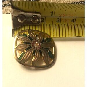 Vintage Poinsettia Enamel Clip On Earrings Gold Green Red 1" Christmas Granny