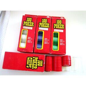 Vintage Poker Chips Blue/Green/White Boxes of 100 - Red Box Not Full Box -Taiwan